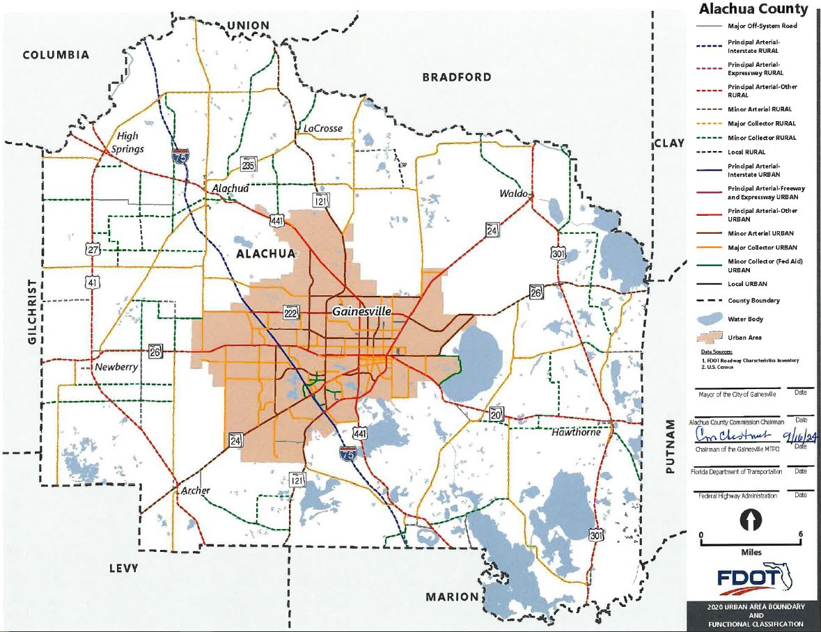 The Metropolitan Transportation Planning Organization (MTPO) for the Gainesville and Alachua Area is responsible for carrying out the region's metropolitan transportation planning program in collaboration with local officials and residents. This is required to receive federal and state funding for highway, transit, bicycle, and pedestrian transportation projects. The MTPO Board is the decision-making policy body of the organization.